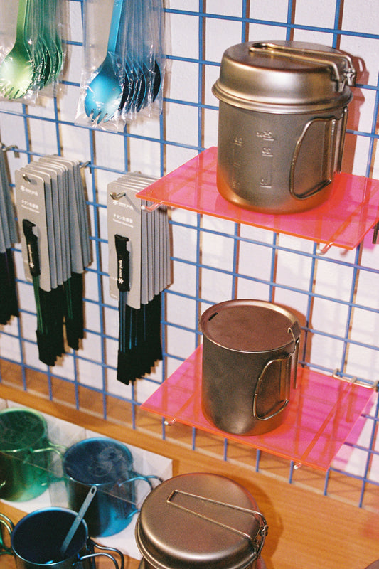 • Snow Peak Single Wall Titanium Nesting Cup Set featuring three ultralight titanium mugs.
